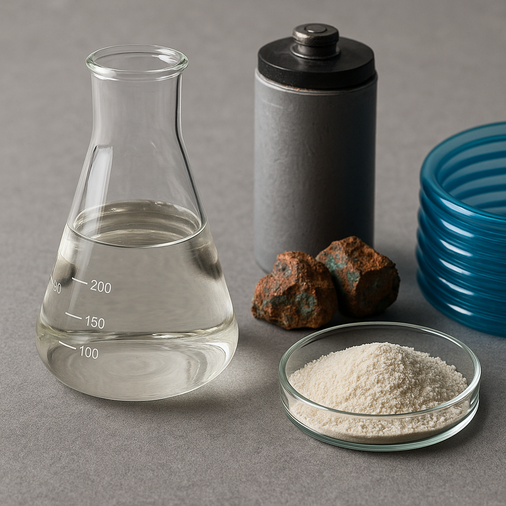 • به‌عنوان عامل لیچینگ (Leaching Agent) در استخراج فلزاتی مثل: